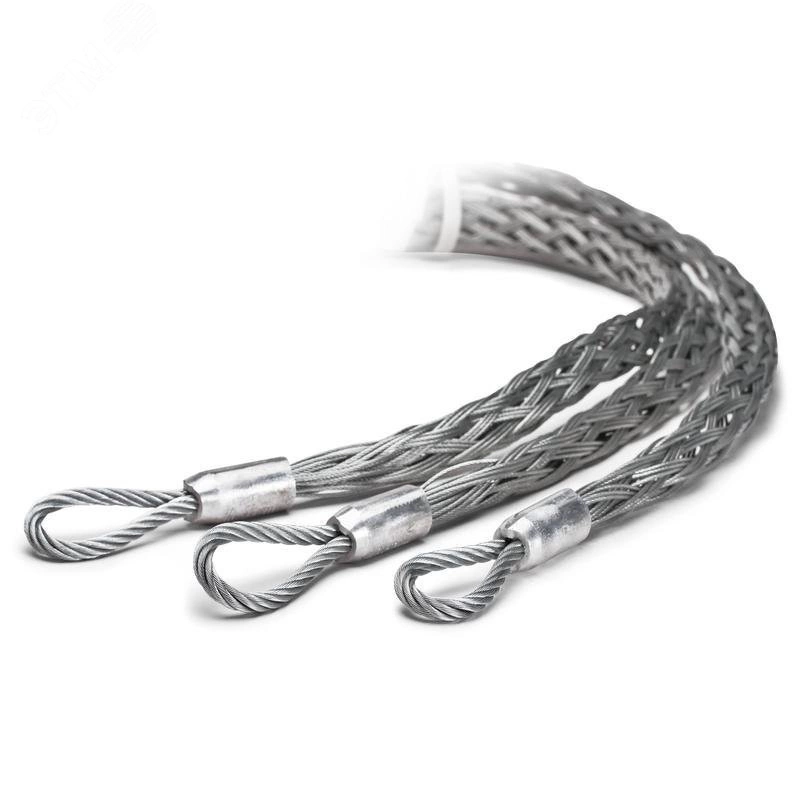 Предназначены для захвата конца кабеля при его протяжке и укладке. Материал - оцинкованная сталь. Соединяются с вертлюгом и тросом-лидером при раскатке. Плетеная конструкция обеспечивает необходимую эластичность. Однородное распределение нагрузки по всей площади захвата кабельного чулка препятствует повреждению изоляции и оболочки кабеля. Кабельные чулки 'КВТ' сплетены вручную и не имеют паяных концов. Гибкая петля позволяет легко проходить изгибы в кабельной канализации. Чулки являются мультиразмерными и рассчитаны на диапазон диаметров кабелей