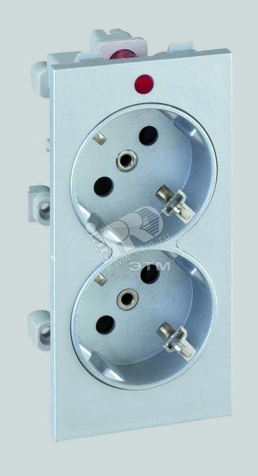 Connect Розетка двойная с заземлением 16А 250В CIMA-модуль 52x108 мм SC алюминий