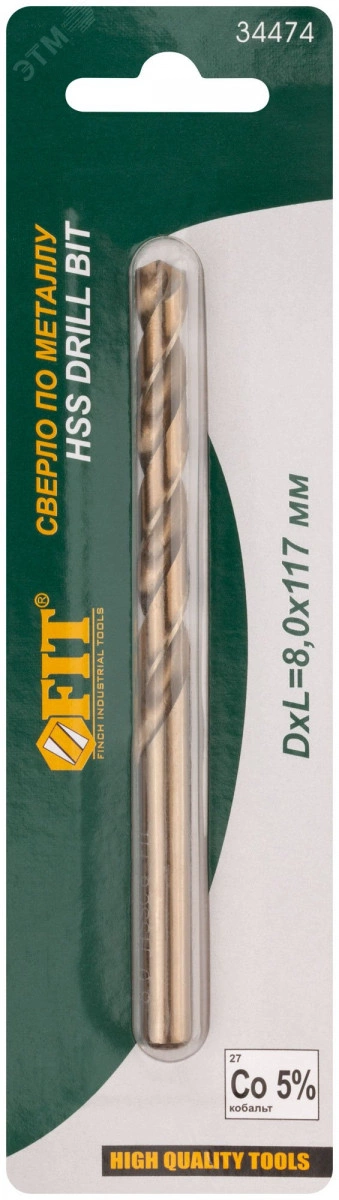 Cверло HSS по металлу Профи, с добавкой кобальта 5%, в блистере 8.0 х 117 мм (1 шт)
