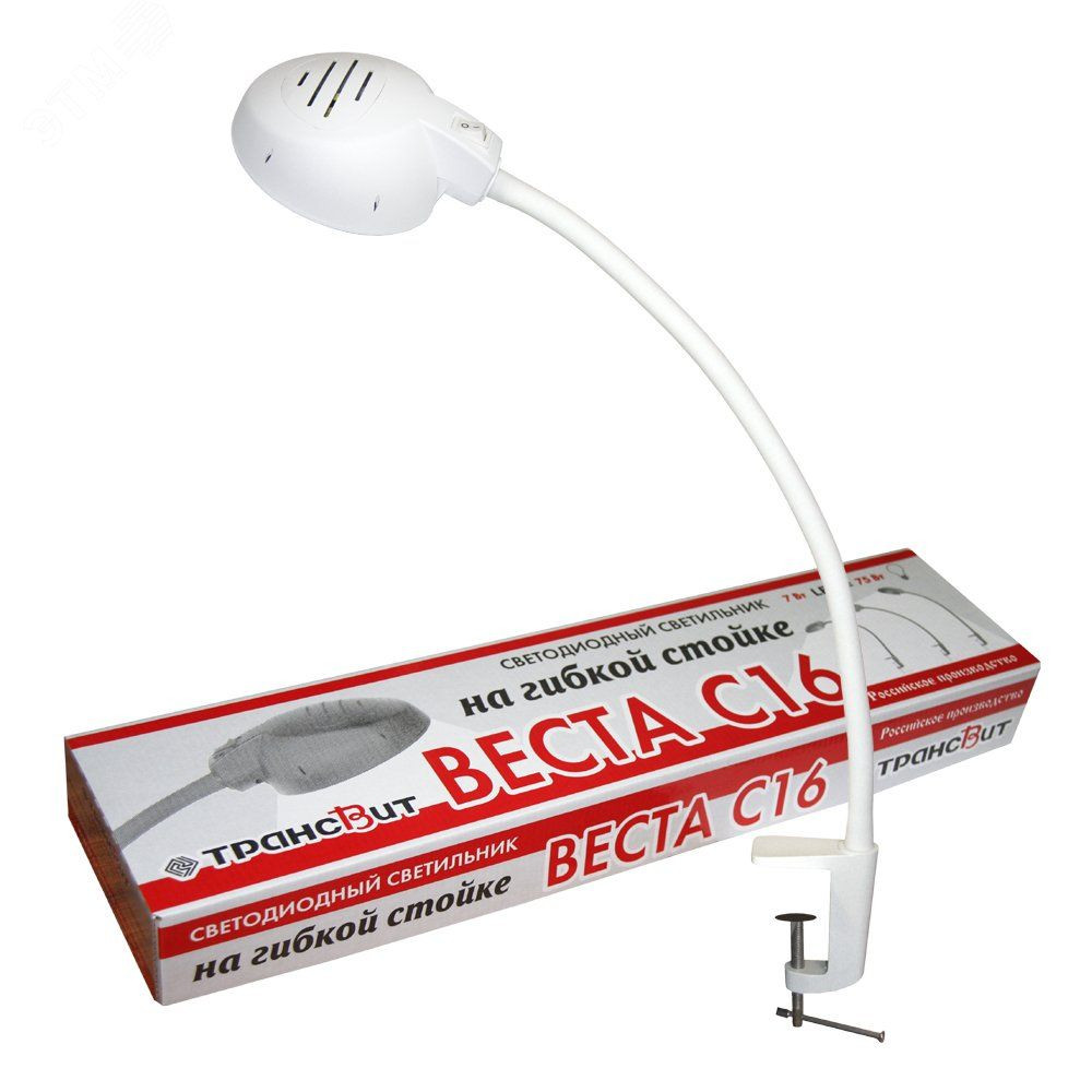 Cветильник светодиодный Веста С16 7Вт гибкая стойка на струбцине 450мм белый IP20