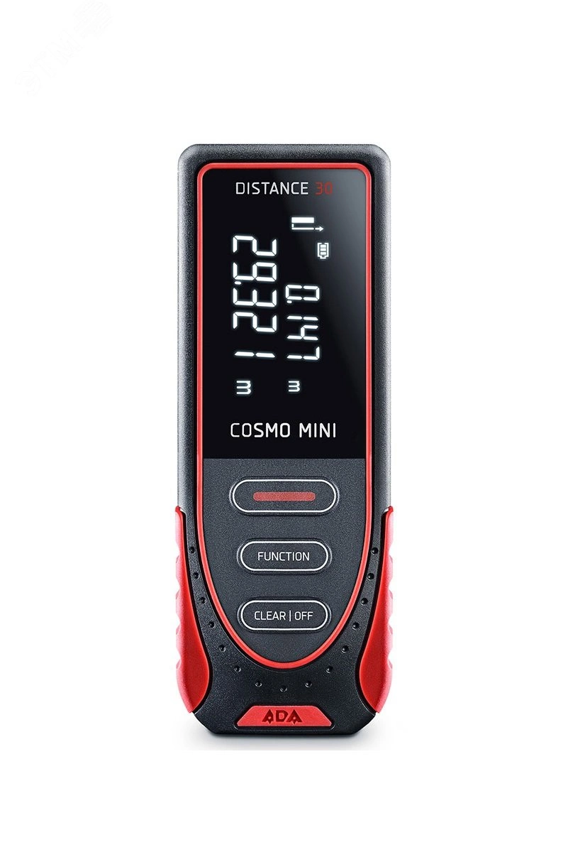 Лазерная рулетка ADA COSMO Mini новая компактная и удобная модель лазерного дальномера. Это младшая модель в специальной серии COSMO с минимальным набором функций для измерений и расчетов.Точность и дальность. Лазерная рулетка ADA COSMO Mini предназначена для измерений дистанций до 30 метров внутри помещений и на улице. Погрешность измерения ±3,0 мм. Оптимальный набор функций. Несмотря на кажущуюся простоту и малые размеры ADA COSMO Mini выполняет самые необходимые функции. ADA COSMO Mini может рассчитать площадь, объем. Недоступные величины (измерение высоких объектов или через препятствие) можно измерить 'по Пифагору'.