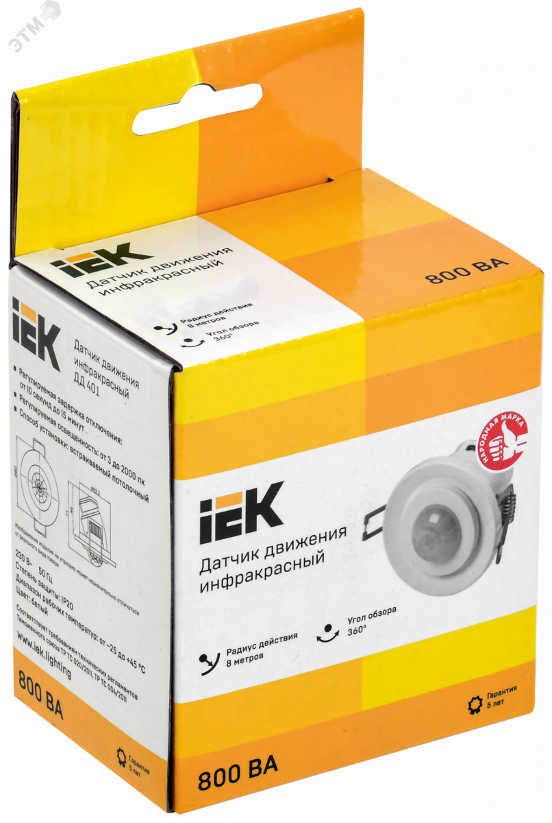 Датчик движения ДД 401 белый 800Вт 360гр 8м IP20 IEK