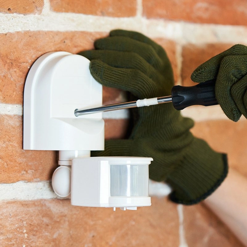 Датчики предназначены для автоматического включения и выключения нагрузки в заданном интервале времени, в зависимости от наличия движущихся объектов в зоне обнаружения датчика и уровня освещенности. Принцип работы инфракрасных датчиков движения заключается в обнаружении изменений инфракрасного (теплового) излучения окружающих объектов. Каждый объект, имеющий температуру, испускает инфракрасное излучение, которое через систему линз или специальных вогнутых сегментированных зеркал попадает на расположенный внутри датчика движения чувствительный сенсор, регистрирующий это. Датчик движения настенный является одним из наиболее популярных типов датчиков движения, устанавливается на стену, угол обзора 180 градусов. Данный датчик имеет степень пыле и влагозащиты IP44.