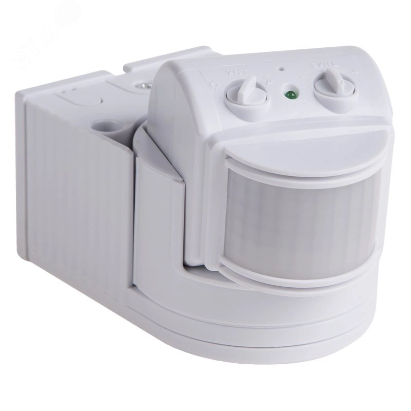 Датчики предназначены для автоматического включения и выключения нагрузки в заданном интервале времени, в зависимости от наличия движущихся объектов в зоне обнаружения датчика и уровня освещенности. Принцип работы инфракрасных датчиков движения заключается в обнаружении изменений инфракрасного (теплового) излучения окружающих объектов. Каждый объект, имеющий температуру, испускает инфракрасное излучение, которое через систему линз или специальных вогнутых сегментированных зеркал попадает на расположенный внутри датчика движения чувствительный сенсор, регистрирующий это. Датчик движения настенный является одним из наиболее популярных типов датчиков движения, устанавливается на стену, угол обзора 180 градусов. Данный датчик имеет степень пыле и влагозащиты IP44.
