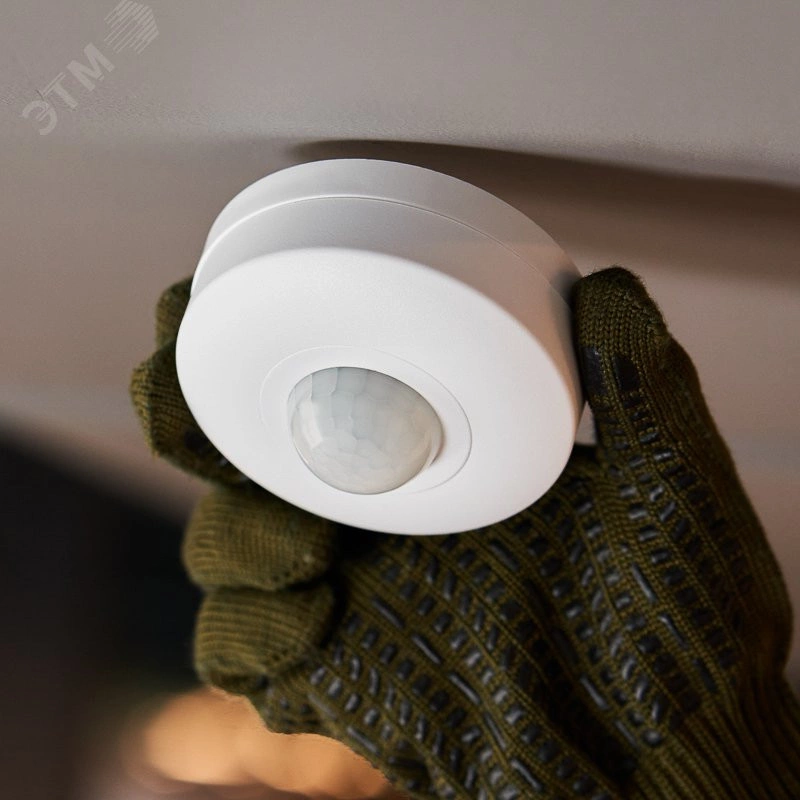 Датчики предназначены для автоматического включения и выключения нагрузки в заданном интервале времени, в зависимости от наличия движущихся объектов в зоне обнаружения датчика и уровня освещенности. Принцип работы инфракрасных датчиков движения заключается в обнаружении изменений инфракрасного (теплового) излучения окружающих объектов. Каждый объект, имеющий температуру, испускает инфракрасное излучение, которое через систему линз или специальных вогнутых сегментированных зеркал попадает на расположенный внутри датчика движения чувствительный сенсор, регистрирующий это. Данный датчик предназначен для монтажа на потолок.
