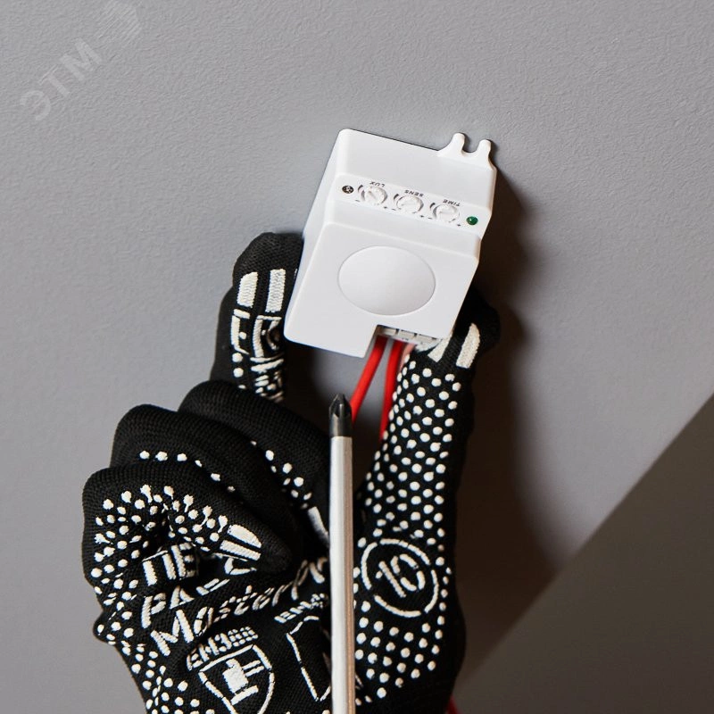 Микроволновый датчик движения излучает высокочастотные электромагнитные волны (частота волн может быть различной в зависимости от производителя, обычно она составляет 5,8 ГГц), которые отражаясь от окружающих объектов регистрируются сенсором и в случае обнаружения малейших изменений отраженных электромагнитных волн, микропроцессор устройства приводит в действие заложенную в него функцию. Данный датчик предназначен для монтажа на потолок.