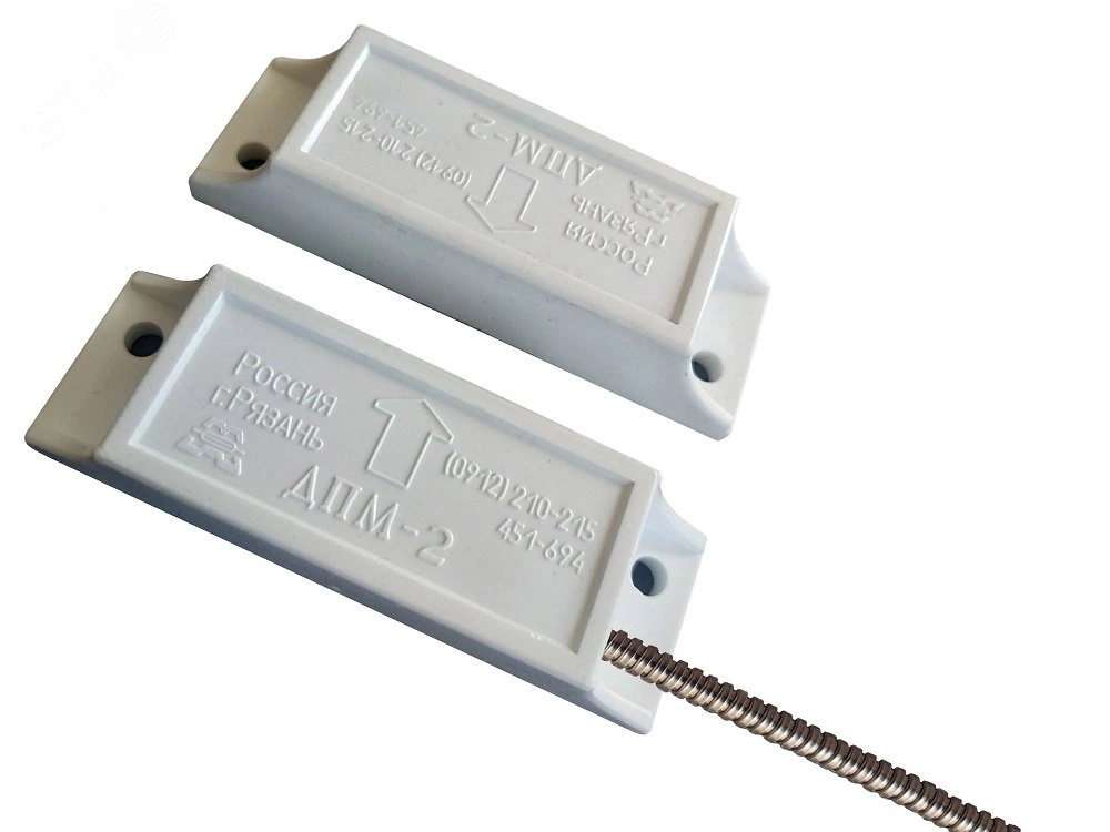 Датчики положения магнитогерконовые ДПМ-2, предназначены для блокировки ворот, железнодорожных контейнеров, ангаров, дверей вагонов, лифтов и других конструктивных элементов зданий и сооружений из магнитопроводных материалов (сталь, чугун, оцинкованное железо и т.д.) и немагнитопроводных материалов, на открывание или смещение с выдачей сигнала путем размыкания (переключения) сухого контакта геркона, а также в системах автоматики различных устройств.