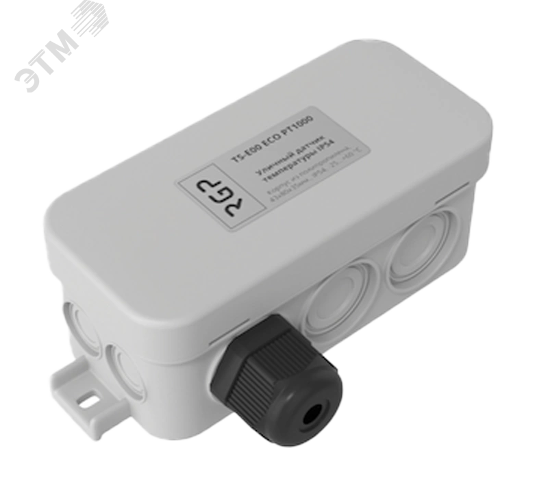 TS-E00 ECO IP54 - Датчик для измерения температуры воздуха на улице, а также в производственных и технологических помещениях. Благодаря своей конструкции датчик легко крепится на стенах, а также устойчив к внешним ударным воздействиям, благодаря корпусу из полипропилена. Измерительный элемент размещается на боковой стенке корпуса, что позволяет нивелировать влияние температуры стен зданий на показания датчика.Измерительные элементы могут быть с прямой (PTC-элементы - Pt1000) или с обратной зависимостью (NTC-элементы - NTC10k) от температуры. Внутри корпуса находится измерительный элемент и клеммная колодка для подключения кабеля. Маркировка датчика осуществляется с помощью наклейки на его корпусе, внутри корпуса есть дополнительная маркировка с информацией о типе измерительного элемента.