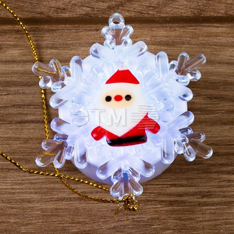 Светодиодная подвесная фигурка ''Дед Мороз на снежинке'' 5,5?5,5 см станет прекрасным украшением интерьера, создаст праздничную атмосферу и подарит веселое настроение благодаря символичному исполнению и эффектной разноцветной подсветке. В центре композиции находится яркий светодиод RGB, непрерывно меняющий оттенки, хаотично выбранные из 256 вариантов. На обратной стороне расположен специальный блок для батареек типа AG10. Элементы питания входят в комплект. Для подвешивания предусмотрен тонкий шнурок.