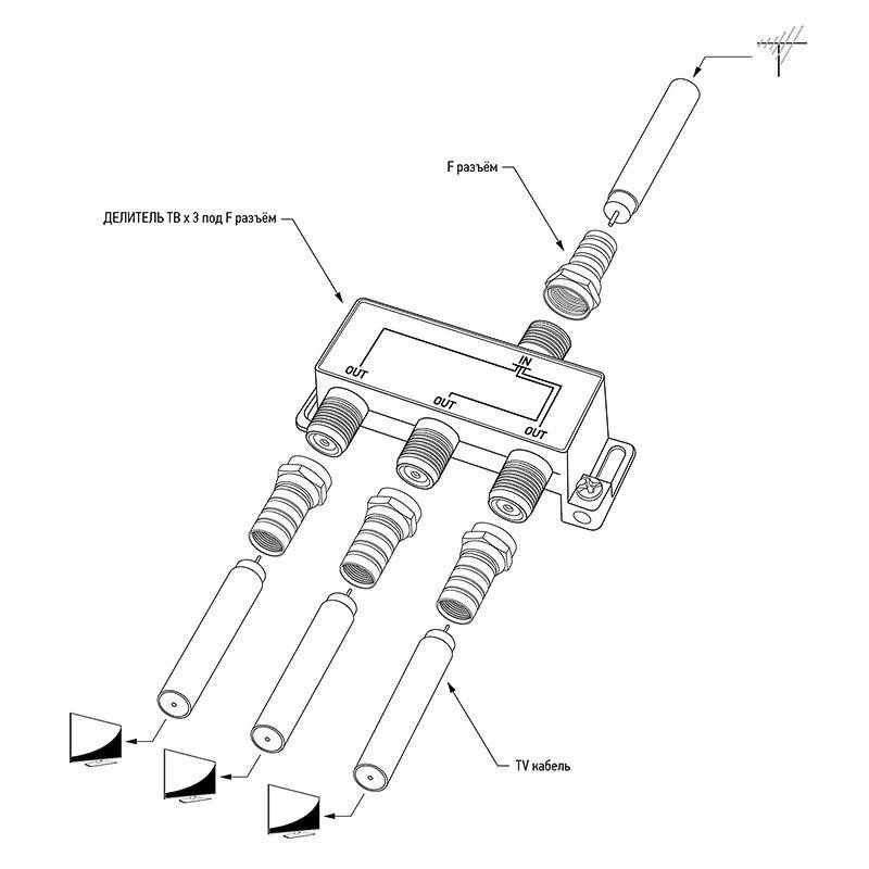 Телевизионный делитель предназначен для телевизионных систем и используется в домах и квартирах, где требуется подключить несколько телевизоров к одной антенне. Этот делитель распределяет поступающий на вход сигнал поровну на его выходы, что обеспечивает одинаково четкое изображение на всех подключенных устройствах. Делитель REхANT имеет три выхода для сигнала и подключается с помощью стандартных F-разъемов. Делитель комплектуется необходимыми F-разъемами, что позволяет удобно и быстро монтировать телевизионный кабель и подключать аппаратуру. Пайка внутри делителя осуществляется с использованием золотосодержащего припоя, что позволяет получить сигнал высокого качества и увеличить надежность. Данный делитель подходит для сигналов с частотой 5-1000 МГц, что соответствует стандартному эфирному телевидению.