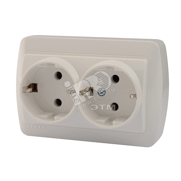 DEMET Розетка двойная с заземлением закрытый корпус наружная белая
