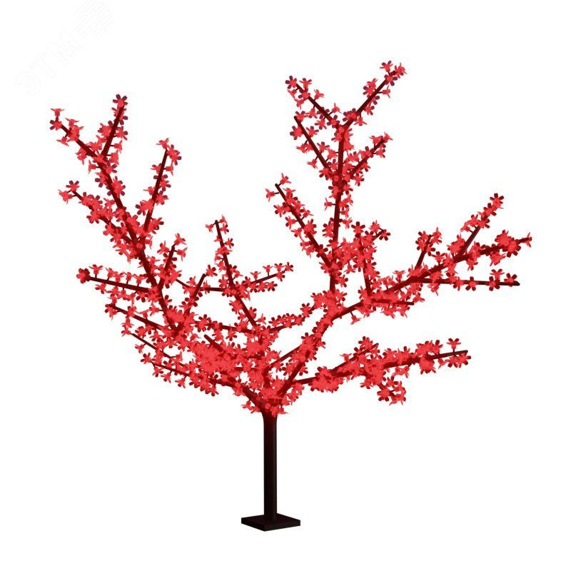 Светодиодное дерево ''Сакура'' высотой 1,5 метра с 864 декоративными цветами создано, чтобы эффектно украсить интерьер или уличное пространство. Оригинальная композиция в виде японской вишни подсвечивается красными диодами, работающими в постоянном режиме. Крона диаметром 1,8 метра состоит из аккуратных реалистичных ветвей, выполненных из черного ПВХ. Вся конструкция имеет полноценную влагозащиту IP65 — подходит для размещения как дома, так и на улице. Ствол устанавливается в прочное основание с отверстиями под анкерный крепеж. Для подключения в электросеть предусмотрен понижающий трансформатор.