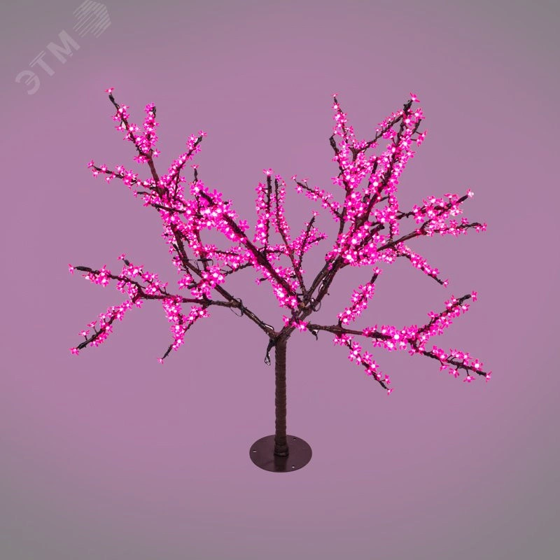 Светодиодное дерево Сакура высотой 1,5 метра станет прекрасным украшением квартиры, частного дома, уличной площадки, террасы кафе или ресторана, дополнит декоративную композицию фотозоны, развлекательного центра, салона красоты. Защита IP65 позволяет размещать изделие как внутри помещений, так и на улице - внутренние компоненты надежно изолированы от влаги и пыли. Раскидистая крона диаметром 1,8 метра состоит из изящных ветвей, с расположенными на них пластиковыми цветами японской вишни. 864 светодиода, которые излучают яркий розовый свет, эффектно выделяют лепестки. Подсветка работает в постоянном режиме.