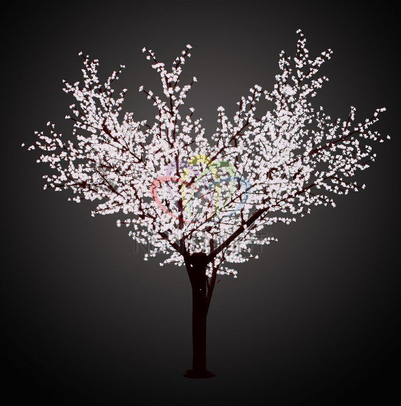 Светодиодное дерево ''Сакура'' высотой 3,6 метра — эффектный, необычный декор, который подходит для размещения как в помещениях, так и на улице. Защита IP65 исключает повреждение из-за попадания воды или пыли. В раскидистой кроне из черных веток 1728 диодов, находящихся внутри декоративных пластиковых цветов. Дерево имеет сборную конструкцию, которую легко смонтировать по инструкции. Металлическую подставку-основу можно закрепить на горизонтальной поверхности при помощи анкерных болтов. Диоды излучают постоянный белый свет.