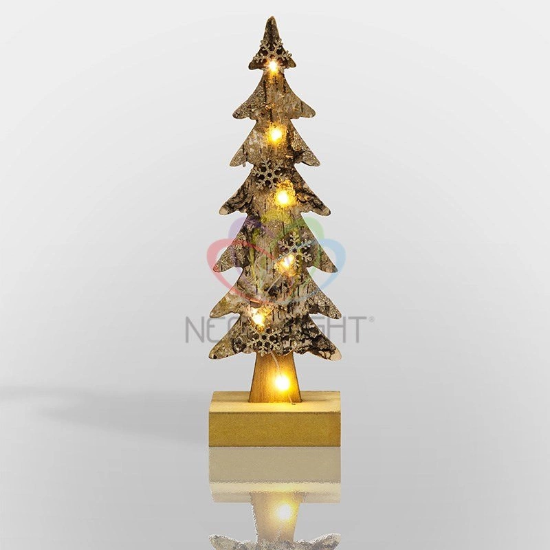 Деревянная фигурка с подсветкой ''Ель со снежинками'' 9,5?6?31 см выполнена из натуральной древесины — экологичного безопасного материала, который не вызывает аллергии у чувствительных людей. Поверхность декоративного элемента в виде резной ели оформлена фактурной корой, с расположенными на ней золотистыми снежинками. 6 диодов теплого свечения эффектно обрамляют композицию, создавая ощущение зимней сказки в уютном пространстве фигурки. Изделие работает от 2 батареек типа ААА.