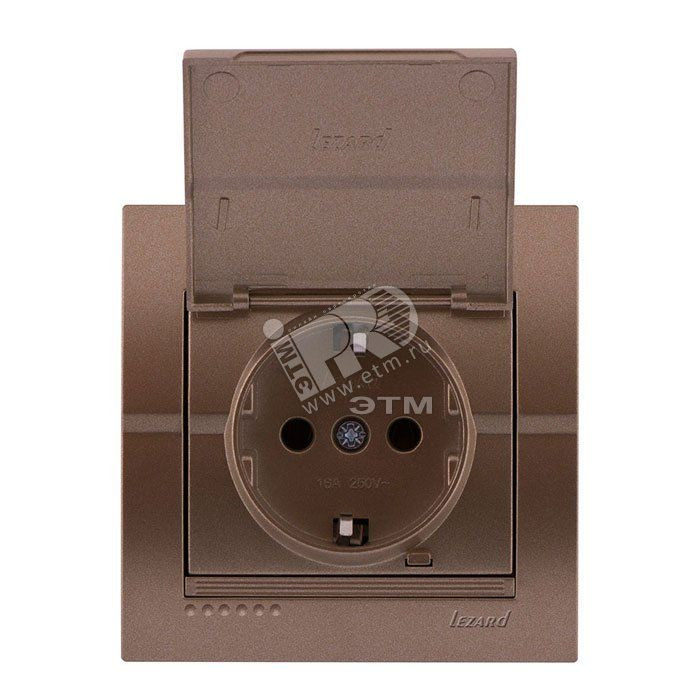 DERIY Розетка с/з с крышкой ПБТ светло-коричневая металлик