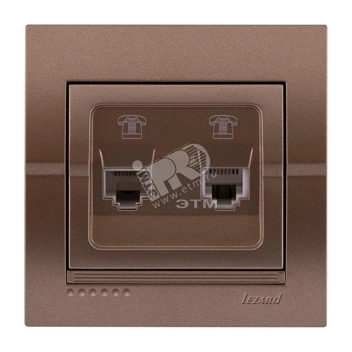 DERIY Розетка телефонная двойная евро светло-коричневая металлик