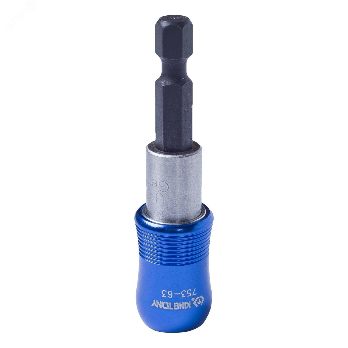 Является переходником, одна часть которого зажимается в шуруповерт, другая фиксирует биту с помощью магнита.