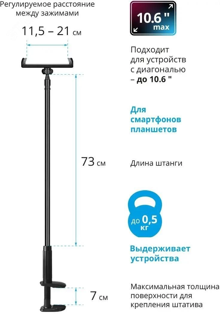 Держатель для планшета DH-233 настольный, 75см, зажим 11.5'' - 21''