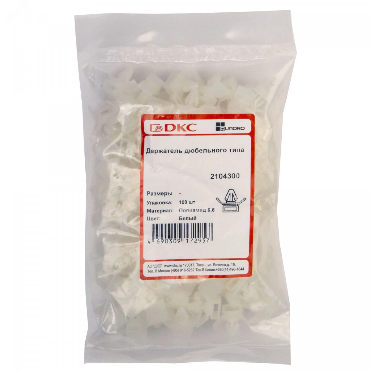 Держатель к хомуту 8.1мм дюбельного типа белый (100шт)