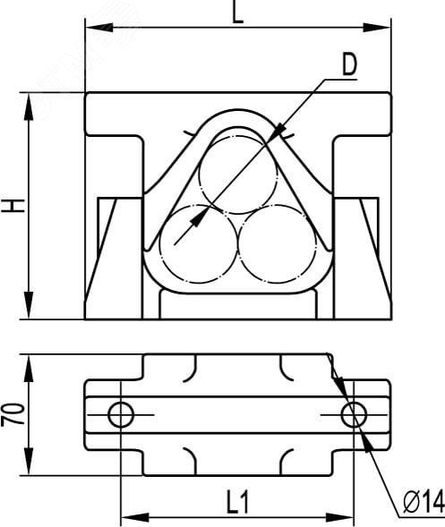 Предназначен для монтажа трехцепной кабельной линии среднего напряжения с прокладкой кабеля в треугольник. Монтаж возможен внутри помещений, либо на открытом воздухе. Изготавливается из высокопрочного армированного полимера. Диаметр кабеля от 35 до 55 мм.