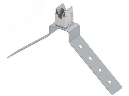 Держатель КЛИК безвинтовое исполнение для установки на коньке проводников 6-10 мм на угловом коньке кровли. Материал - горячеоцинкованная сталь/нержавеющая сталь.
