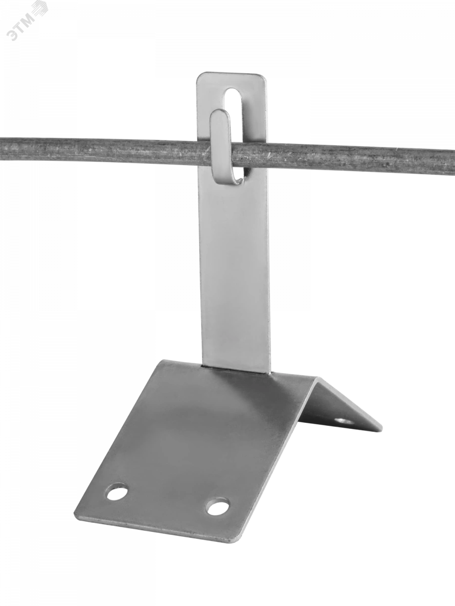 Держатель проводника круглого 8 – 10 мм на конек используется для крепления прутка молниезащитной сетки на коньке скатной кровли. Для крепления на коньке держатель имеет четыре отверстия под саморез диаметром 7 мм.
