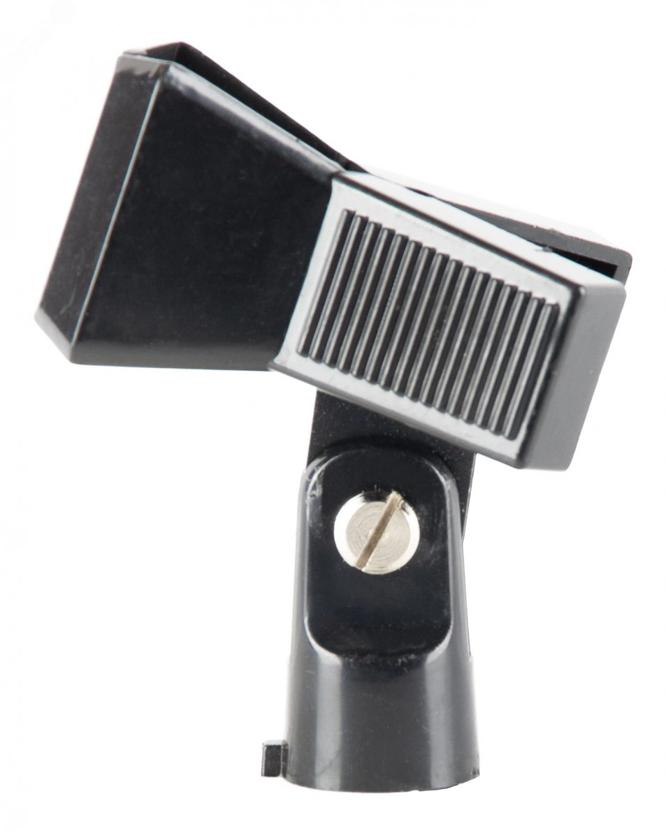 Универсальный держатель совсеместим с любыми типами микрофонных стоек и ручных микрофонов. Имеет тип прищепка. Цвет корпуса черный. Материал корпуса пластик.