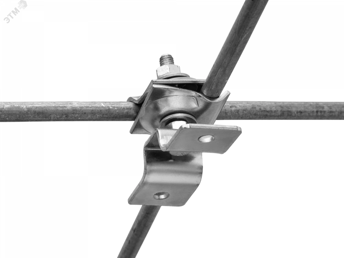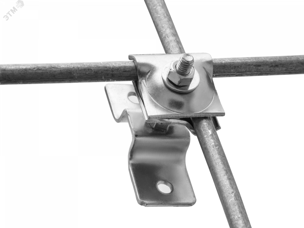 Держатель-зажим выполнен на основе зажима соединительного круглого проводника из оцинкованной стали, закрепленного, болтом и гайкой со скобой. Держатель позволяет закреплять пруток диаметром 8-10 мм на фасаде, кровле, а также выполнять соединение прутков диаметром 8-12 мм под прямым углом, произвольным углом, либо в параллельном направлении. Для крепления на плоскости скоба держателя-зажима имеет два отверстия диаметром 6 мм.