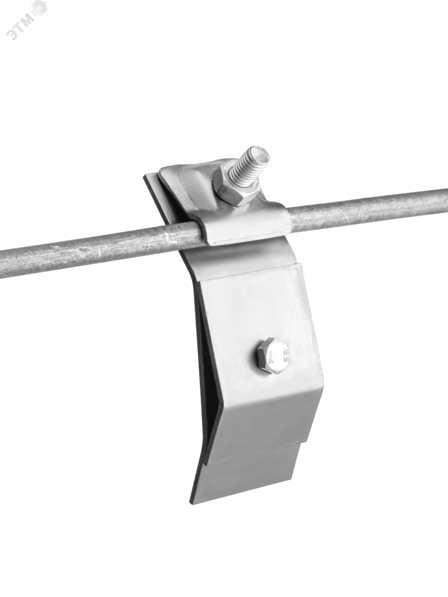 Держатель выполнен из оцинкованной стали. Предназначен для крепления токоотвода диаметром 8…10 мм на водосточном желобе. Рекомендованный шаг установки держателя от 0.8 м. до 1 м.