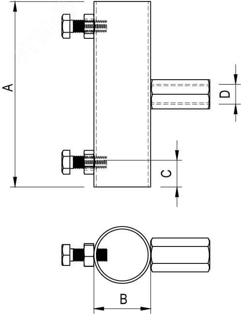 Прямой держатель болтовой для прутка D 5-10 мм H80 мм CU