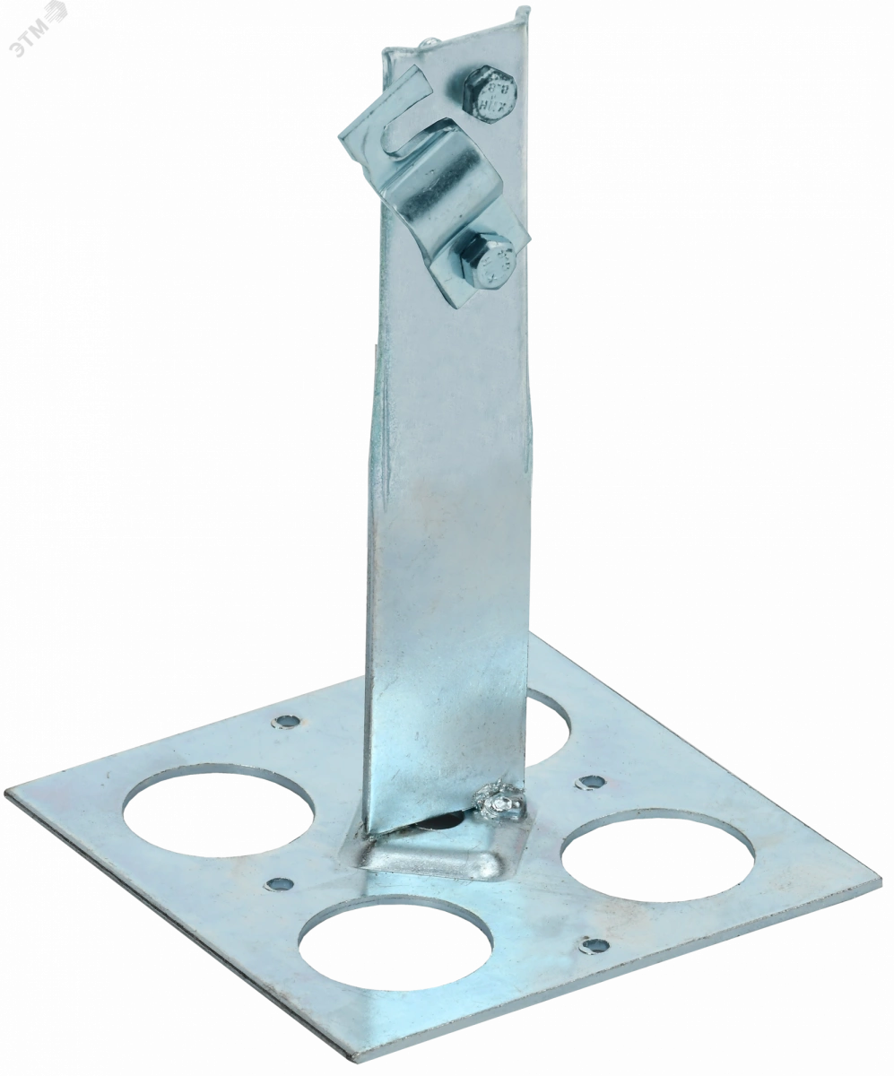 Держатель проводника круглого для плоской кровли с болтовым зажимом предназначен для закрепления прутка на плоской или наклонной кровле. Держатель крепится к кровле при помощи клея. Зажим проводника происходит при помощи болтового соединения. Материал корпуса - сталь горячеоцинкованная.