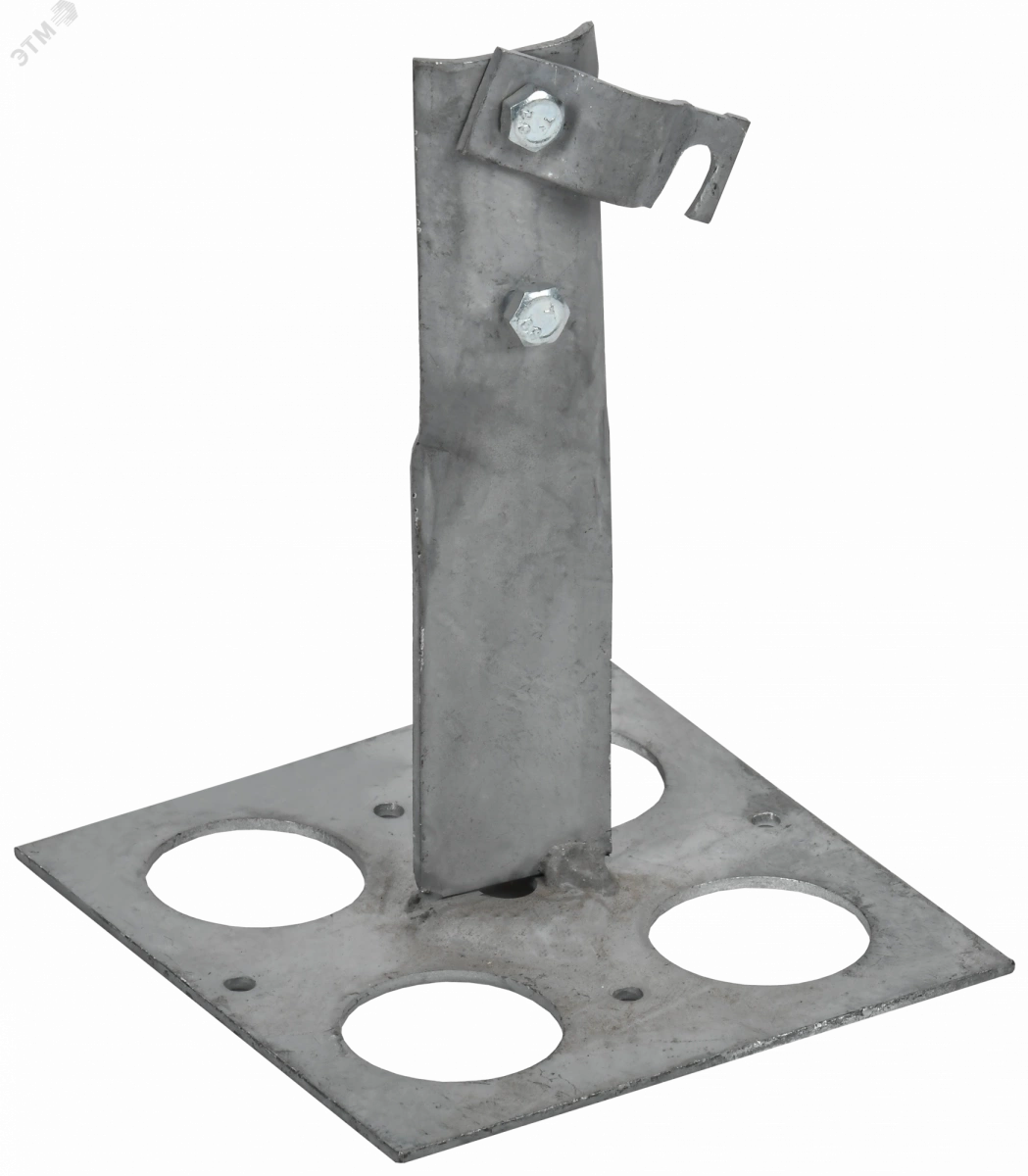 Держатель проводника круглого для плоской кровли с болтовым зажимом предназначен для закрепления прутка на плоской или наклонной кровле. Держатель крепится к кровле при помощи клея. Зажим проводника происходит при помощи болтового соединения. Материал корпуса - сталь с термодиффузионным цинковым покрытием.