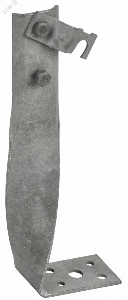 Держатель угловой скрученный с болтовым зажимом предназначен для монтажа проводника на горизонтальные, вертикальные или наклонные поверхности. Скрученная конструкция держателя позволяет крепить проводник на узкие парапеты. Монтируется на поверхности при помощи саморезов. Зажим проводника происходит при помощи болтового соединения. Материал корпуса - сталь горячеоцинкованная.