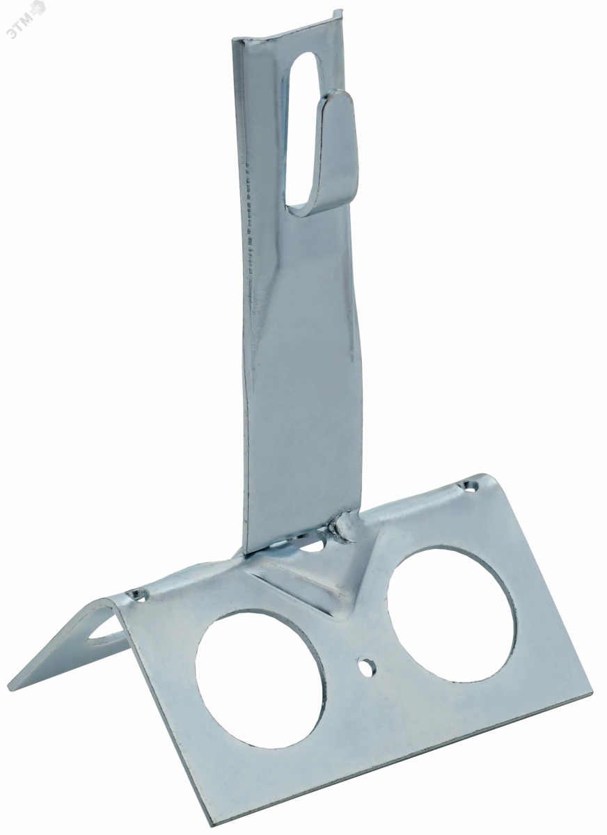 Держатель проводника круглого для конька с безболтовым зажимом широкий предназначен для закрепления прутка на коньке скатной кровли. Зажим проводника происходит путем загибания ''язычка'' держателя. На коньке крепится при помощи метизов. Материал корпуса - сталь горячеоцинкованная.