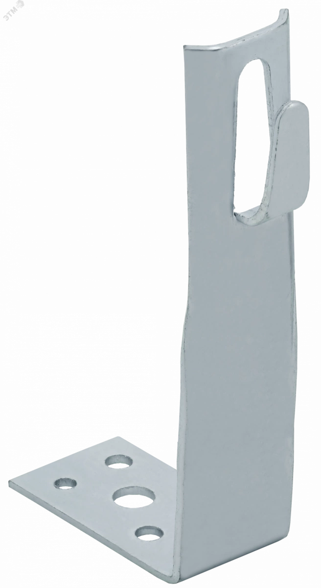 Держатель угловой с безболтовым зажимом предназначен для монтажа проводника на горизонтальные, вертикальные или наклонные поверхности. Монтируется на поверхности при помощи саморезов. Зажим проводника происходит путём загибания ''язычка'' держателя. Материал корпуса - сталь горячеоцинкованная.