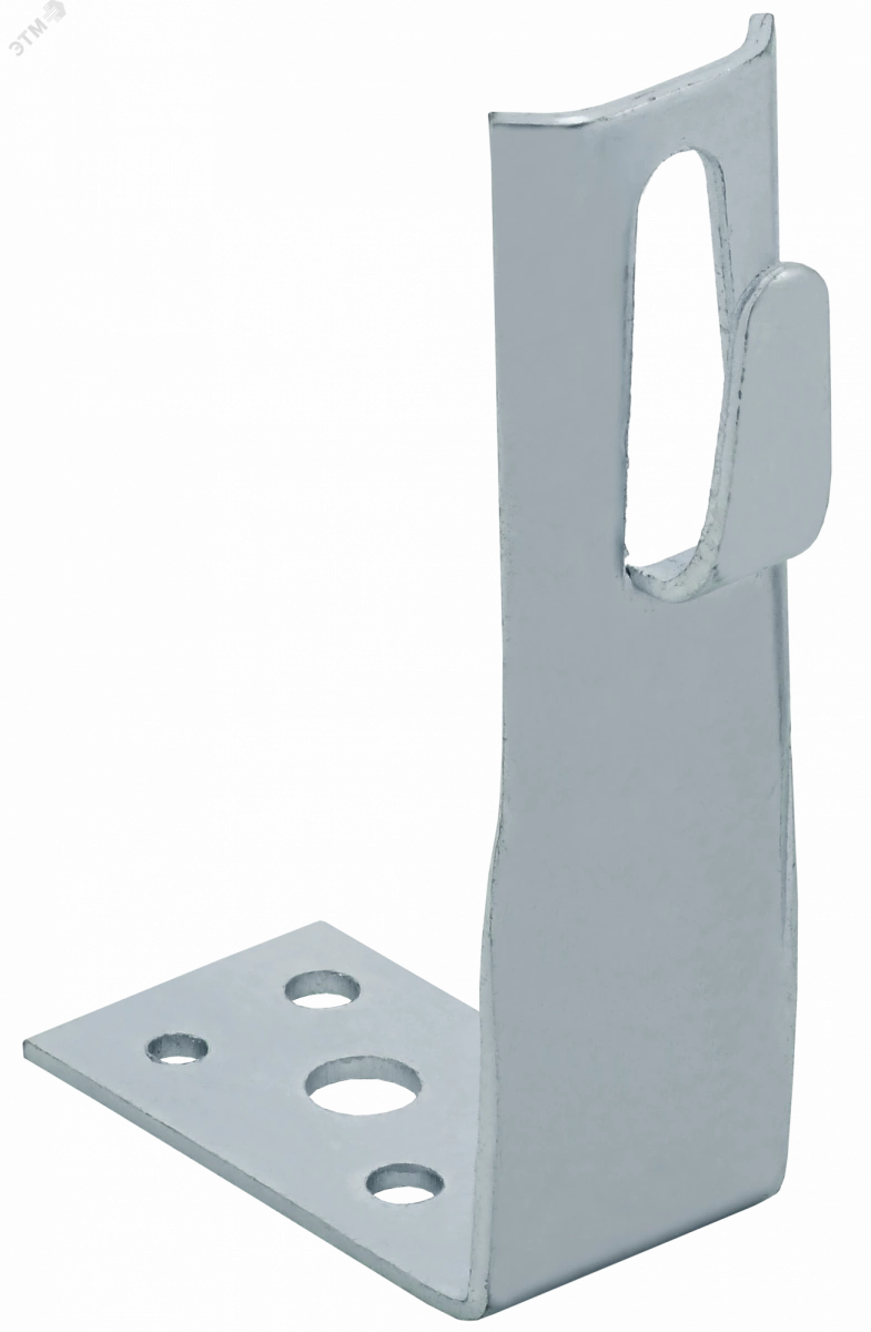 Держатель угловой с безболтовым зажимом предназначен для монтажа проводника на горизонтальные, вертикальные или наклонные поверхности. Монтируется на поверхности при помощи саморезов. Зажим проводника происходит путём загибания ''язычка'' держателя. Материал корпуса - сталь горячеоцинкованная.