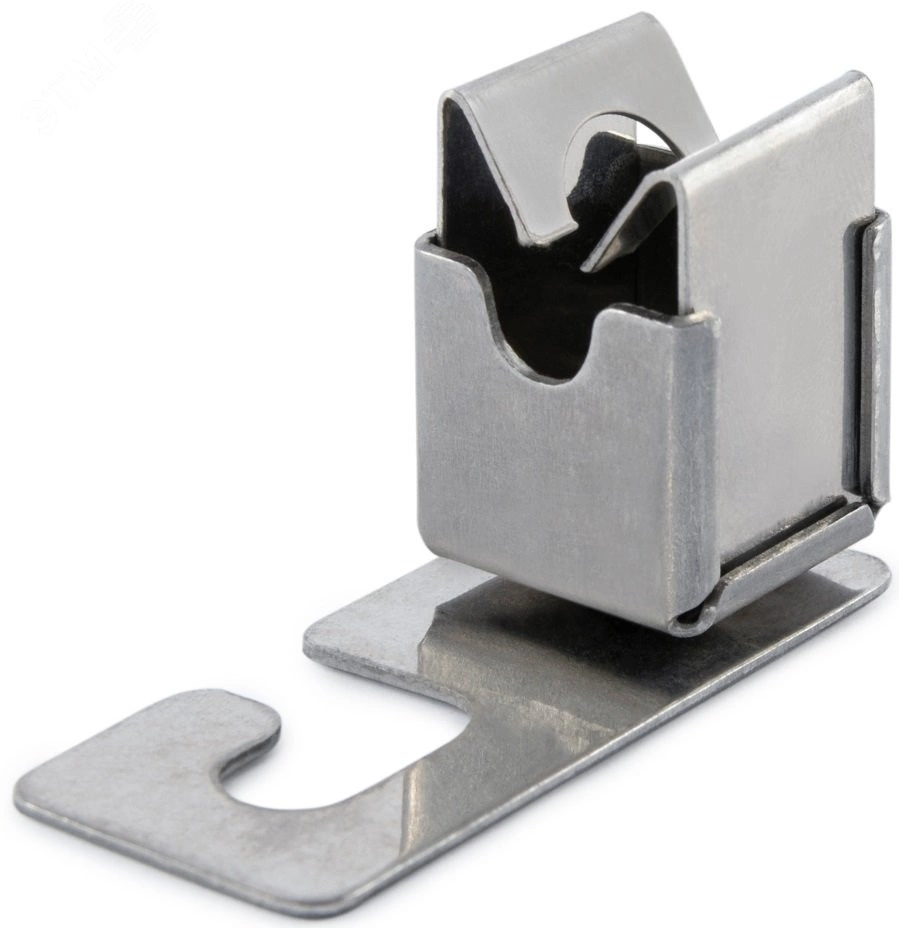 Держатель изготовлен из нержавеющей стали и предназначен для использования на черепичной, шиферной или волнообразной кровле. Монтаж проволоки диаметром 8 мм (тип круглого проводника Rd 8) осуществляется путем защелкивания в держатель. Верхняя часть держателя может вращаться на основании, что позволяет прокладывать трассу из проволоки диаметром 8 мм в любом направлении. Расстояние от поверхности кровли до верхней части круглого проводника составляет 26 мм, а до центра проволоки – 30 мм.