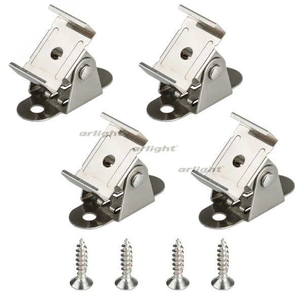 Комплект поворотных держателей профиля SL-LINE-2020, SL-LINE-2013. Фиксация профиля строго под любым углом в диапазоне 180 градусов, с возможностью изменения. В комплекте 4 держателя, 4 шурупа.Материал - сталь.