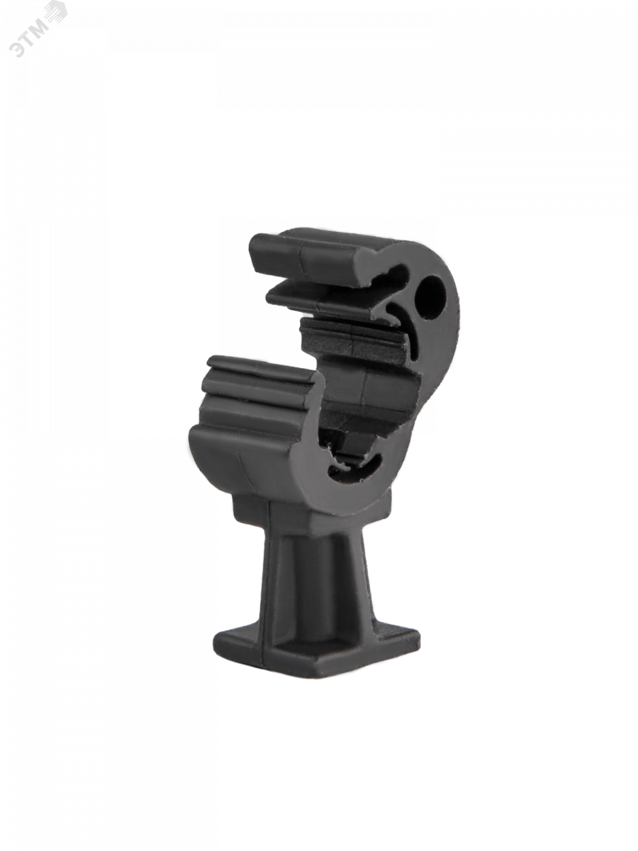 Пластиковый держатель предназначен для фиксации токоотвода диаметром 8…10 мм к кровле, фасаду здания. Монтаж токоотвода осуществляется путем защелкивания держателя. В основании держателя имеется отверстие для крепления при помощи самореза.