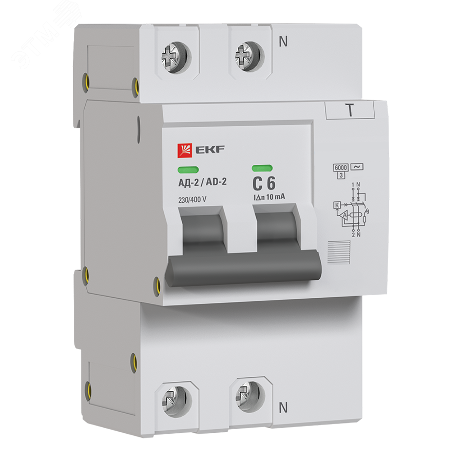 Выключатель автоматический дифференциальный (дифавтомат) АД-2 применяется в электрических цепях переменного тока номинального напряжения 230В и частотой 50 Гц. Предназначен для защиты людей от поражения электрическим током при случайном прикосновении к открытым проводящим частям электроустановки. Защищает электроустановки (ЭО) при повреждении изоляции проводников и неисправностях ЭО, предотвращает возгорания и пожары, возникающие вследствие протекания токов утечки и развивающихся из них коротких замыканий, замыканий на корпус и замыканий на землю. Обеспечивает автоматическое отключение участка электрической сети при перегрузках и токах короткого замыкания.