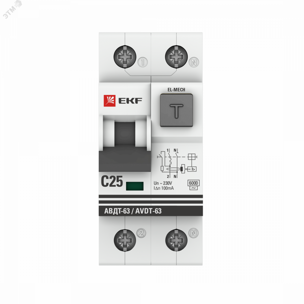 Автоматический выключатель дифференциального тока АВДТ-63 EKF PROxima представляет аппарат, сочетающий функции автоматического выключателя с электромеханическим или электронным УЗО. При обнаружении автоматическим выключателем в защищаемом участке сети тока утечки (повреждения) на землю или сверхтока (тока перегрузки или короткого замыкания) происходит срабатывание устройства, приводящее к отключению защищаемой сети. Возможна коммутация алюминиевым и медным проводником.