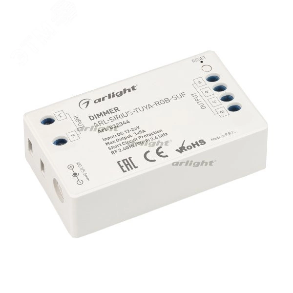 Диммер ARL-SIRIUS-TUYA-RGB-SUF (12-24V, 3x5A, 2.4G) (ARL, IP20 Пластик, 3 года)