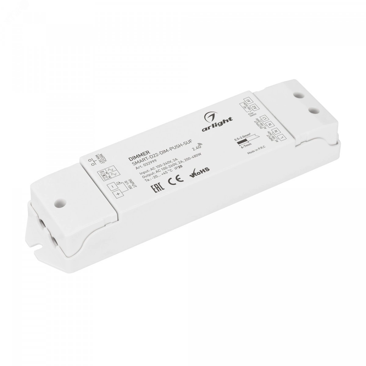 Диммер SMART-D22-DIM-PUSH-SUF (230V, 2A, TRIAC, 2.4G) (ARL, IP20 Пластик, 5 лет)