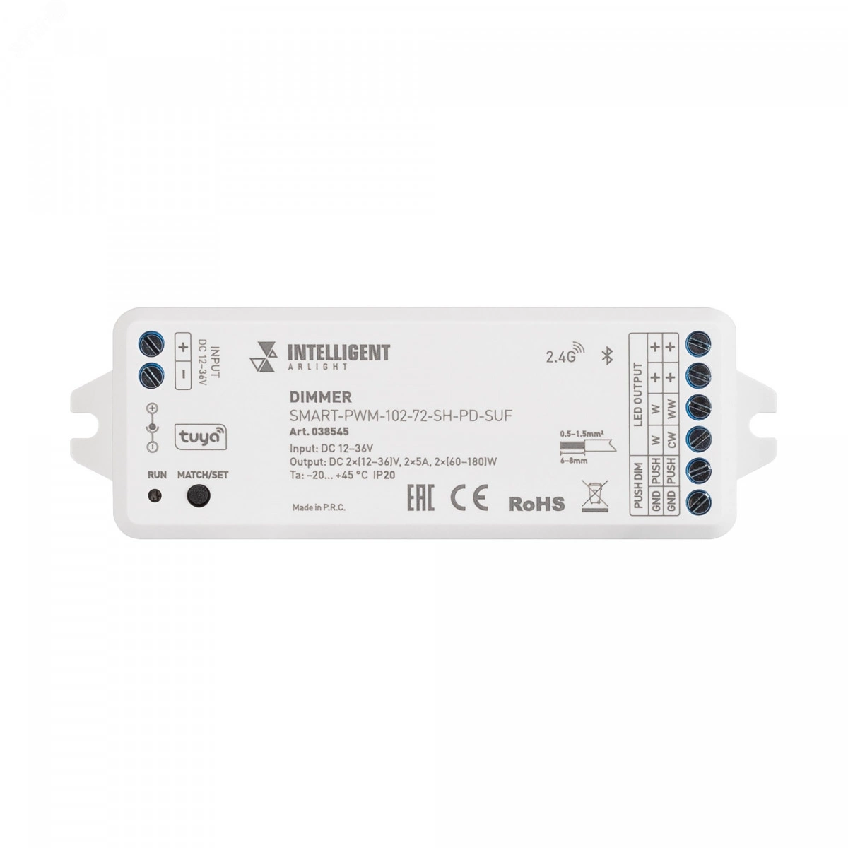 Диммер SMART-PWM-102-72-SH-PD-SUF (12-36V, 2x5A, TUYA BLE, 2.4G) (IARL, IP20 Пластик, 5 лет)