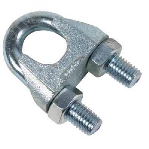 Зажим канатный (тросовый) усиленный с двумя шестигранными гайками и шайбами. Имеет увеличенные размеры и применяется для ответственного крепления, а также в случаях возникновения динамических нагрузок.