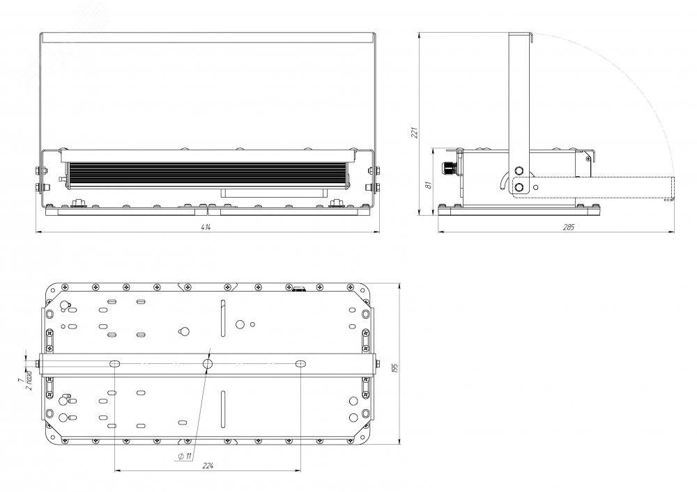 Светодиодная плата из алюминия обладает высокой прочностью и выполняет роль корпуса. Благодаря большой площади эффективно отводится тепло от светодиодов. Несущая конструкция и крепление из окрашенной стали толщиной 2 мм.