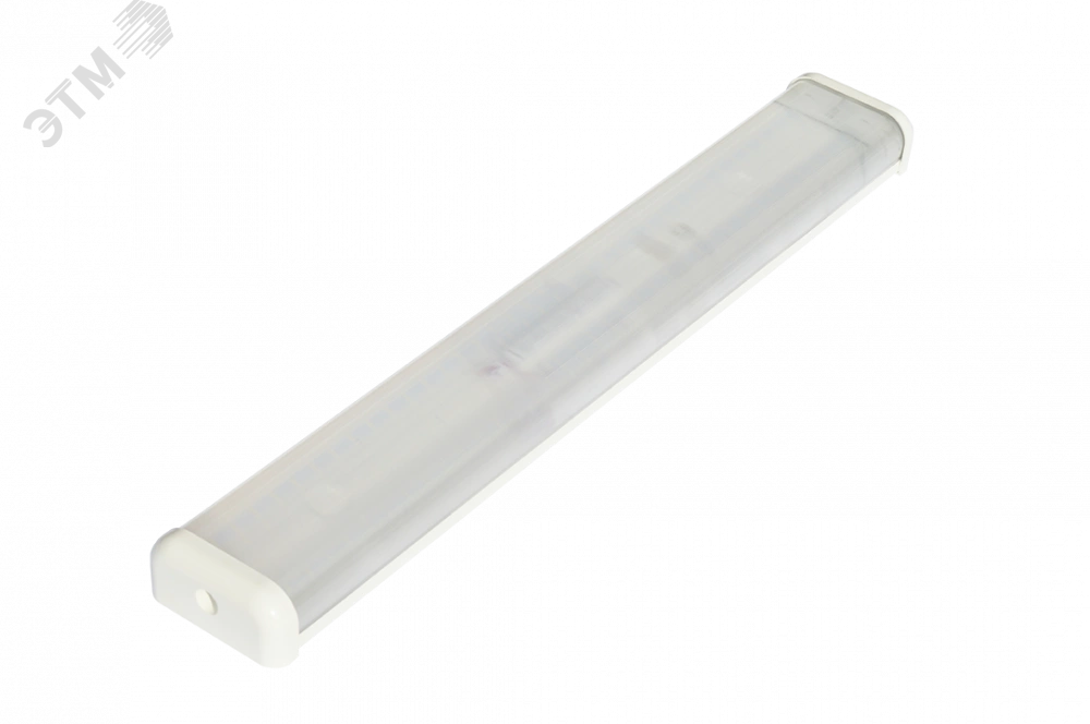 Линейный светильник для административно-офисного освещения. Корпус из листовой стали, окрашенный белой порошковой краской. Торцевины белого цвета из ударопрочного полистирола крепятся к основанию с помощью винтов.