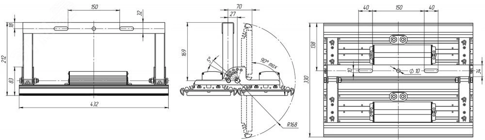 Корпус изготовлен из экструдированного алюминиевого профиля (сплав АД31Т1) с анодированным покрытием. Поворотная лира — сталь 2,5 мм, окрашенная порошковой краской.