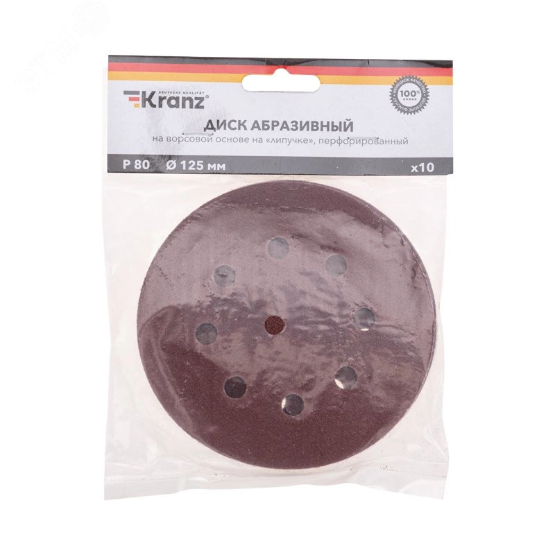 Абразивный диск на липучке KRANZ - универсальный инструмент, который применяют в строительстве и ремонте для обработки поверхностей из различных материалов, таких как древесина, металл, стекло, камень. Шлифкруг крепится на опорную тарелку болгарки или шлифовальной машинки. Обладает гибкой основой. Благодаря липучке его можно надежно прикрепить к опоре и уверенно приступить к мокрой или сухой технологии шлифования. Диск изготовлен из прочного материала с абразивным наполнителем, который обеспечивает высокую степень износостойкости и эффективность работы. Размер абразивного зерна - Р 80 (чем меньше значение Р, тем крупнее зерно). В упаковке поставляется 10 перфорированных абразивных дисков. Назначение - универсальное.